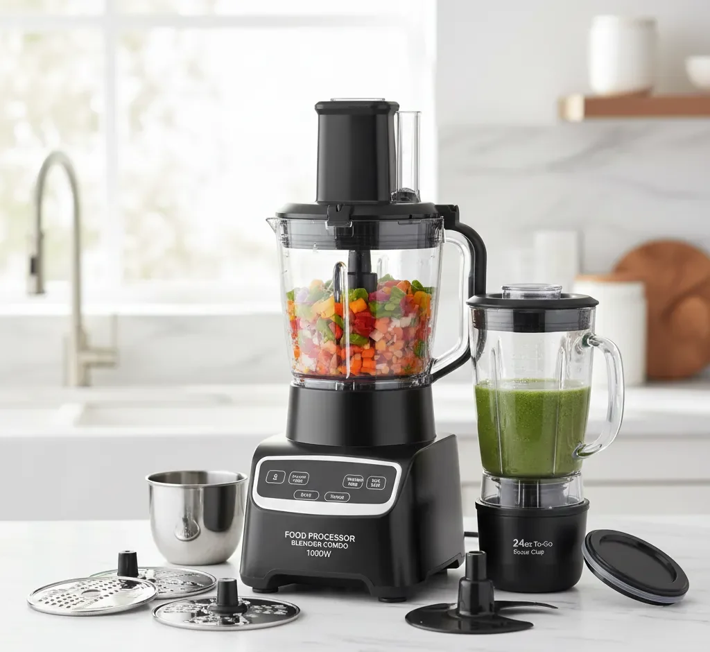 This multi-functional vegetable chopper includes interchangeable blades for slicing, dicing, and chopping efficiently.