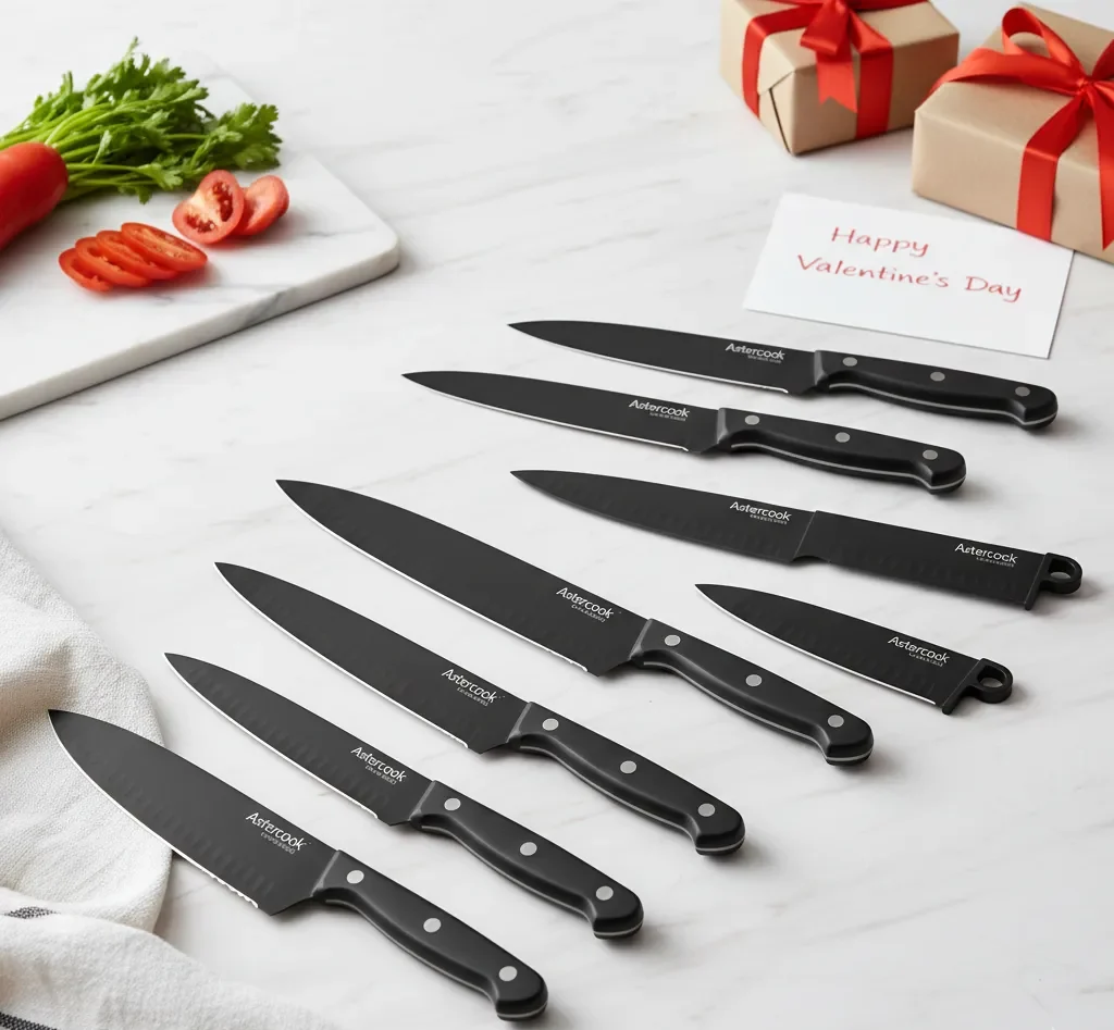 + Free ShippingA complete knife set featuring anti-rust coated blades and safety guards, perfect for everyday kitchen use.
